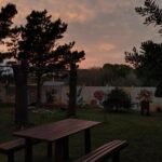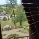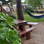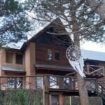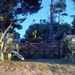 En la entrada del predio, hay un estacionamiento cubierto (capacidad para un auto por cabaña).