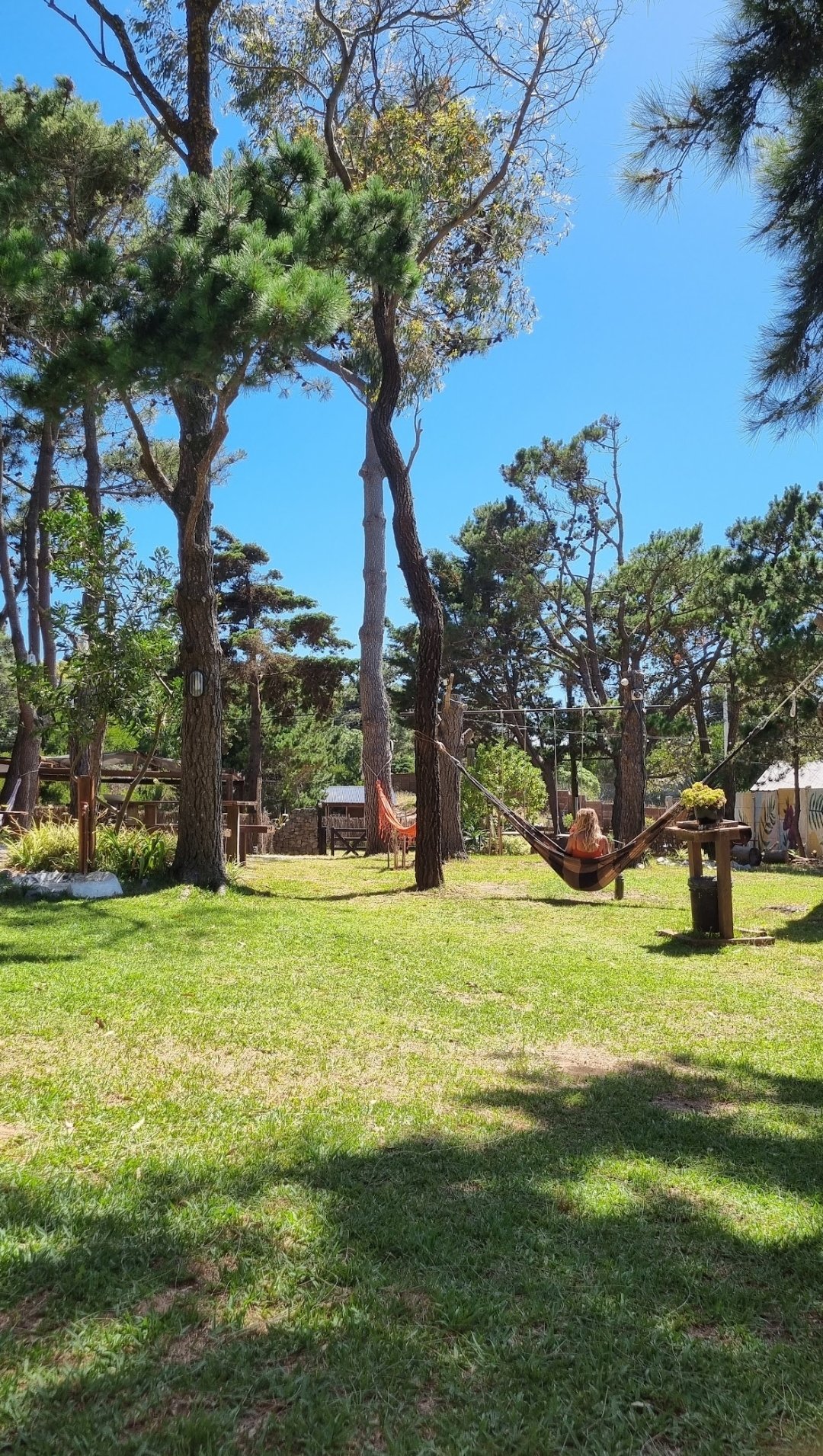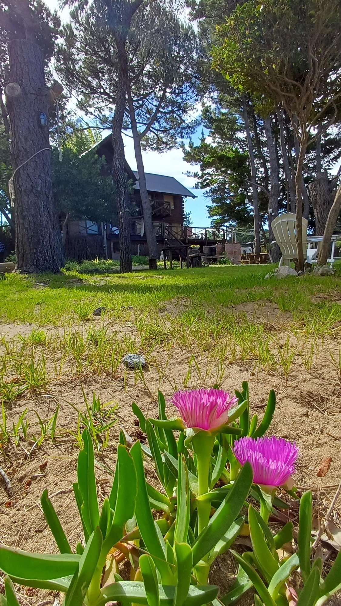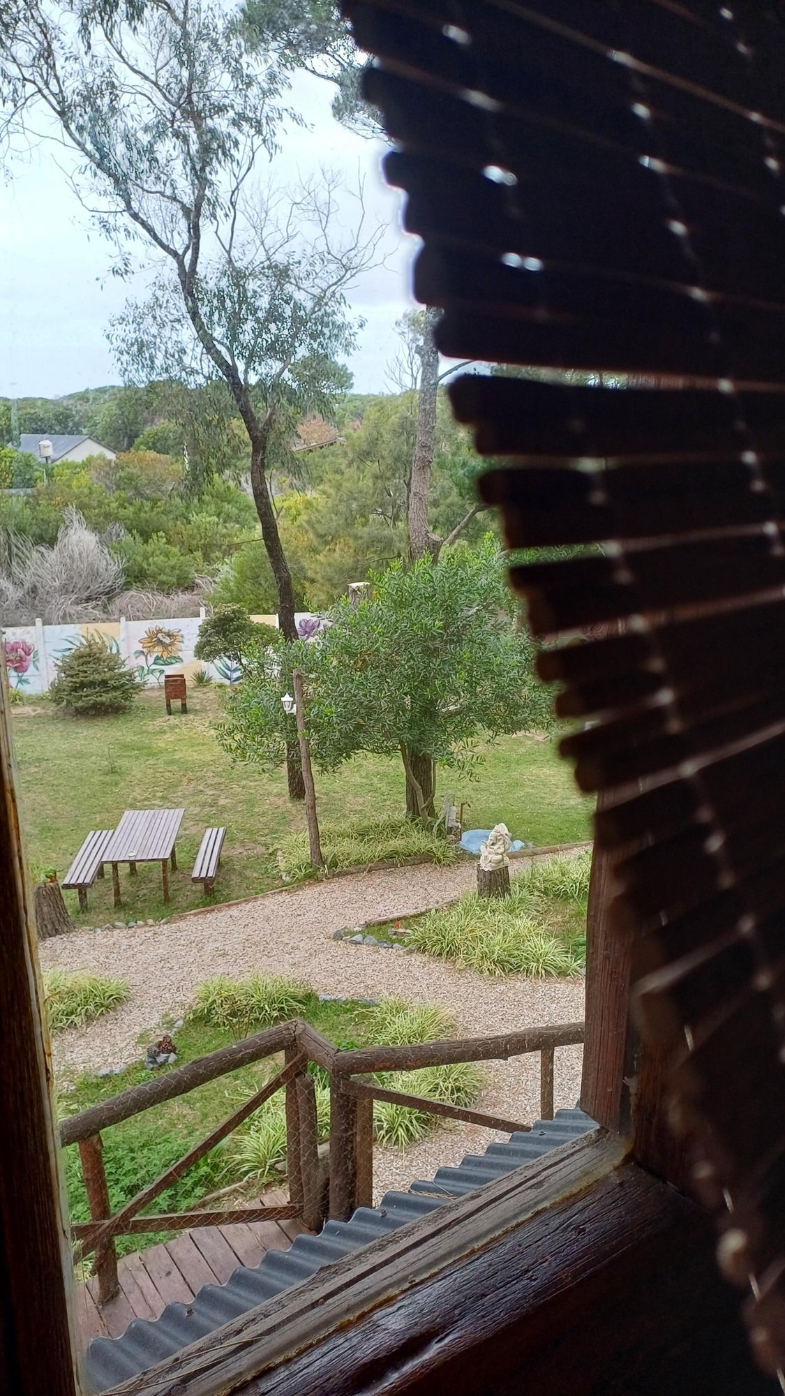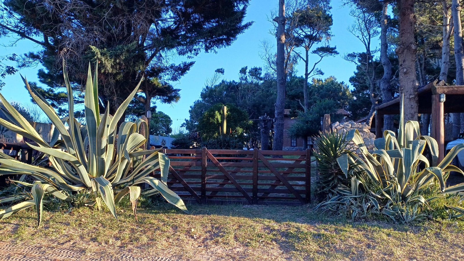 En la entrada del predio, hay un estacionamiento cubierto (capacidad para un auto por cabaña).