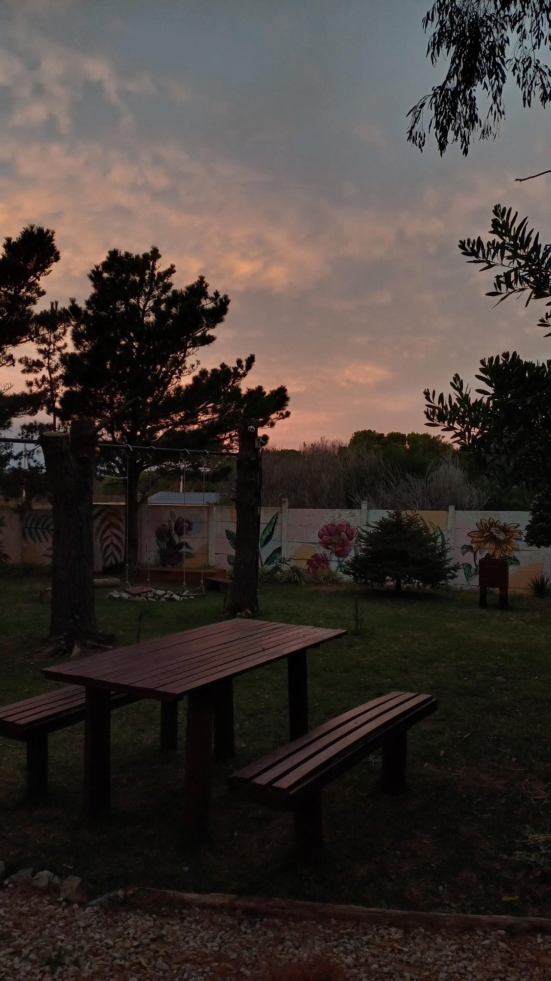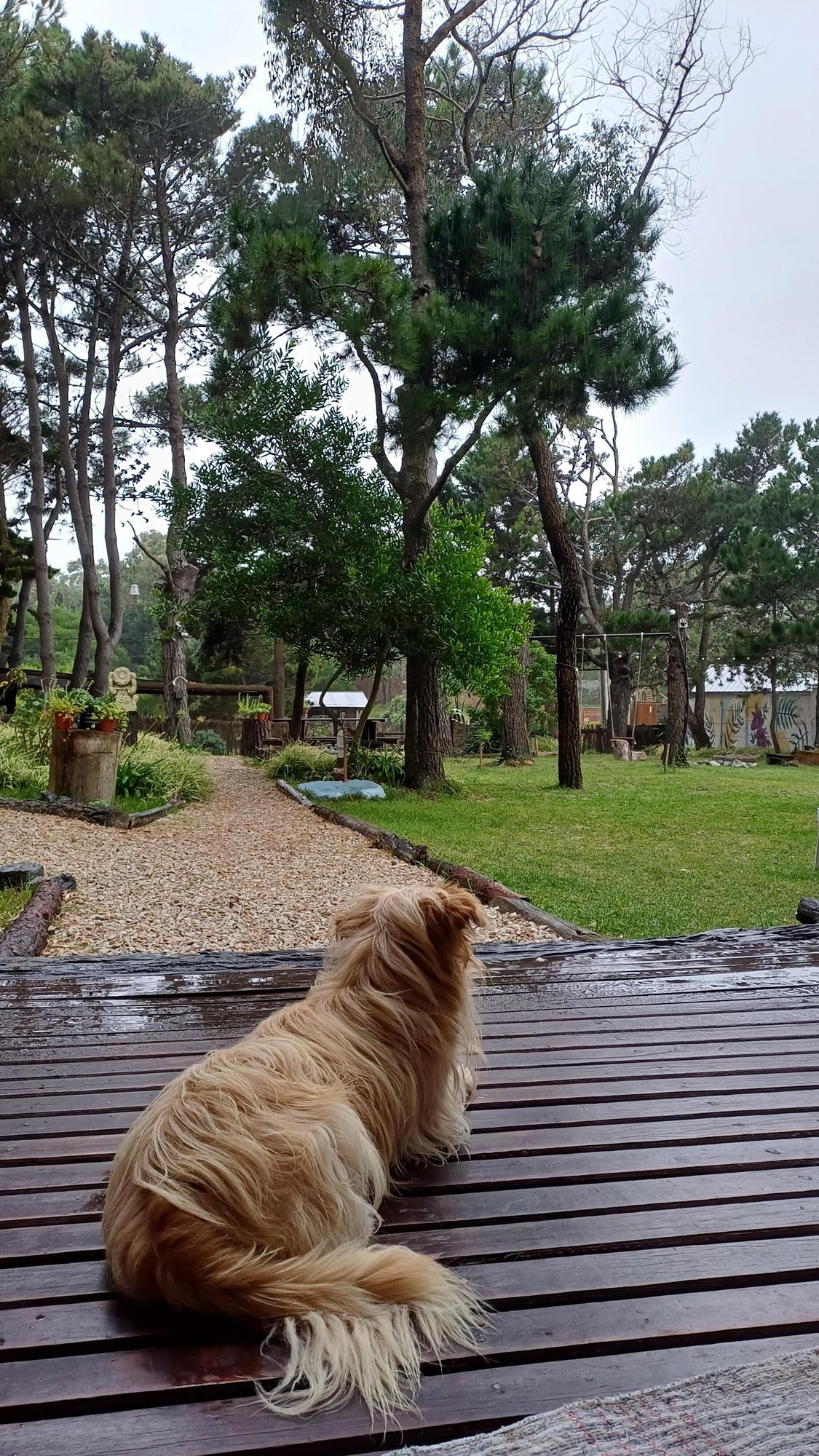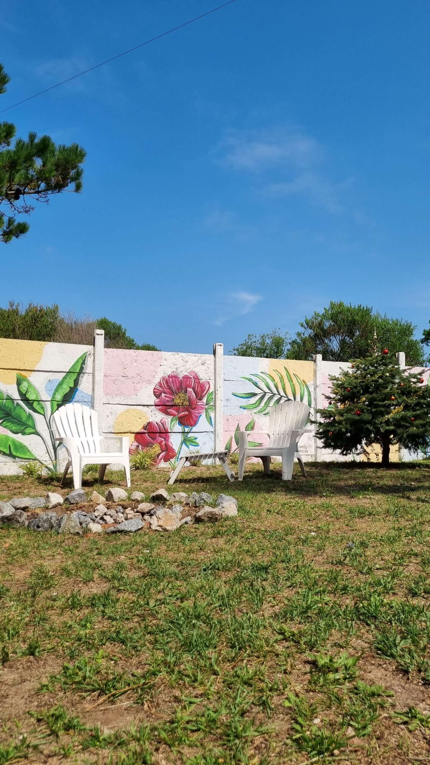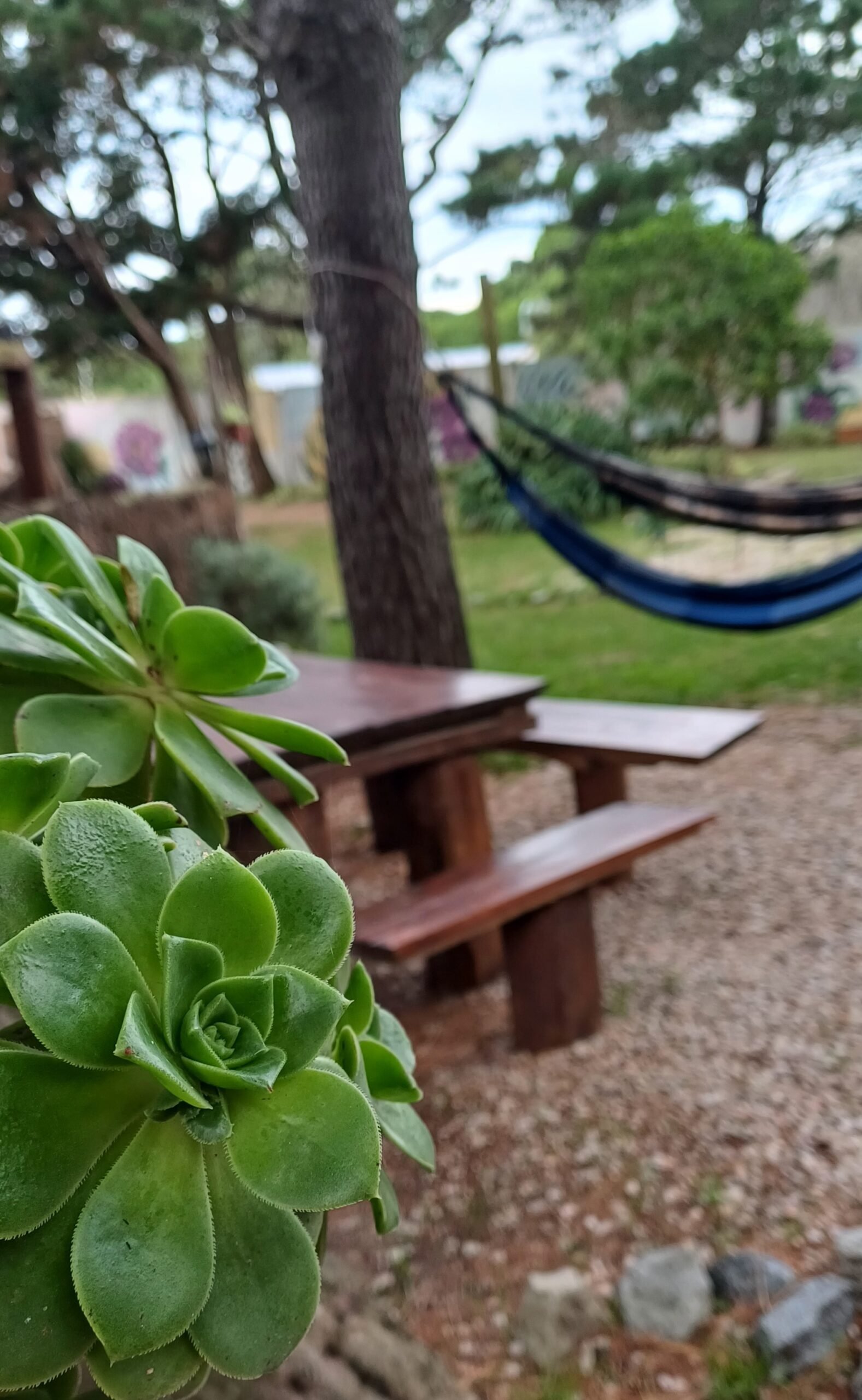 En la entrada del predio, hay un estacionamiento cubierto (capacidad para un auto por cabaña).